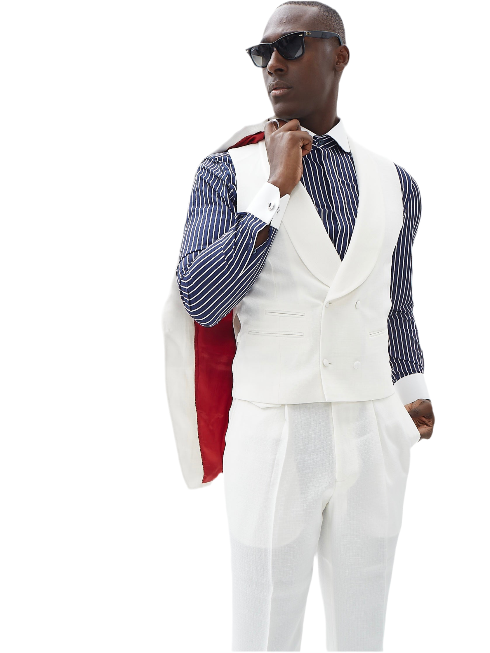 Blue pinstripe, White club Collar and Cuff contrast , Long sleeves French single hexagon cuff with two buttonholes, Placket style, Hidden button roll outward and knot, Stretchy Fabric, Cutaway Collar