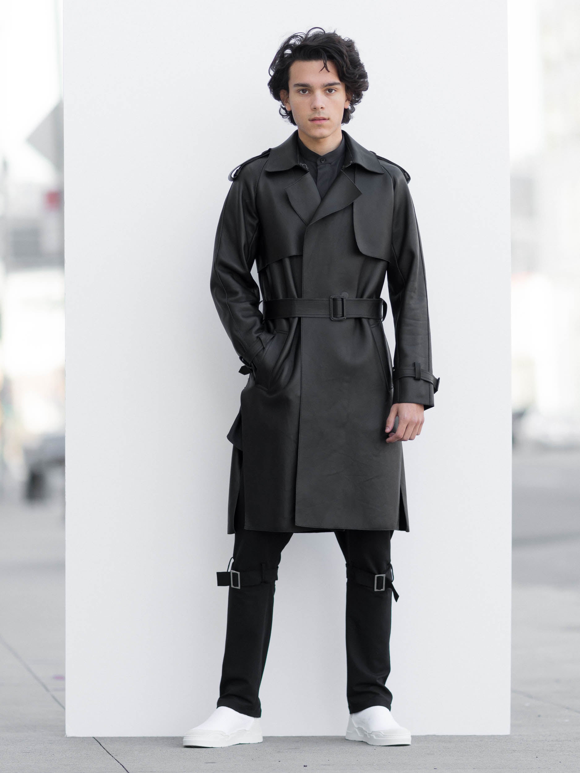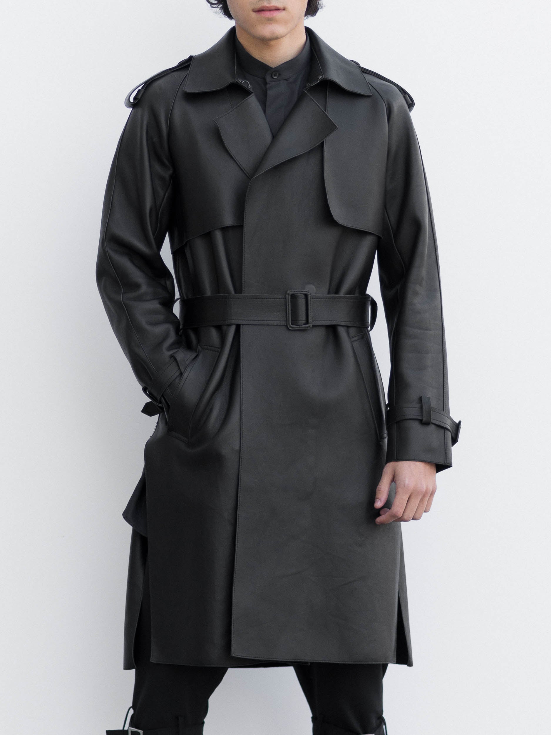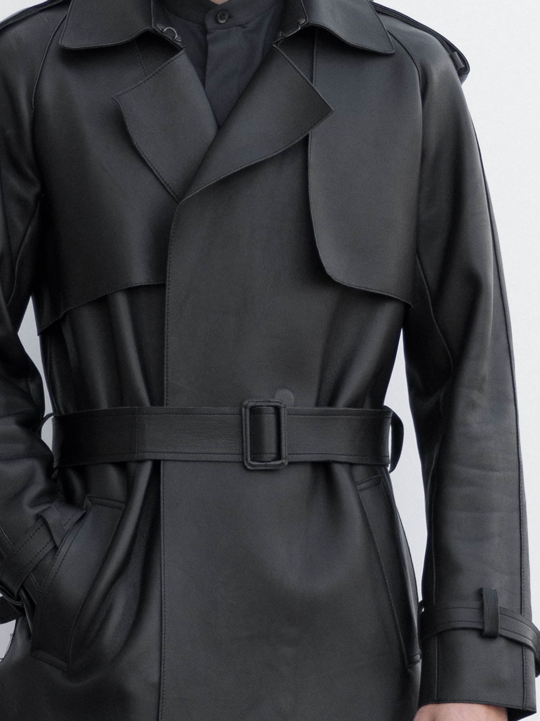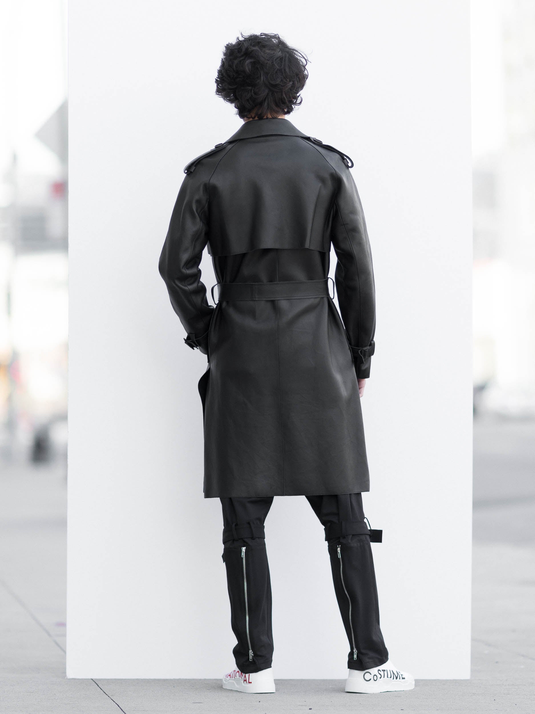 Introducing the Frank Debourge Matrix Men Black Leather Trench Coat, a stunning piece that exudes style and sophistication. This coat is crafted from premium lambskin leather and is fully lined for comfort and durability.