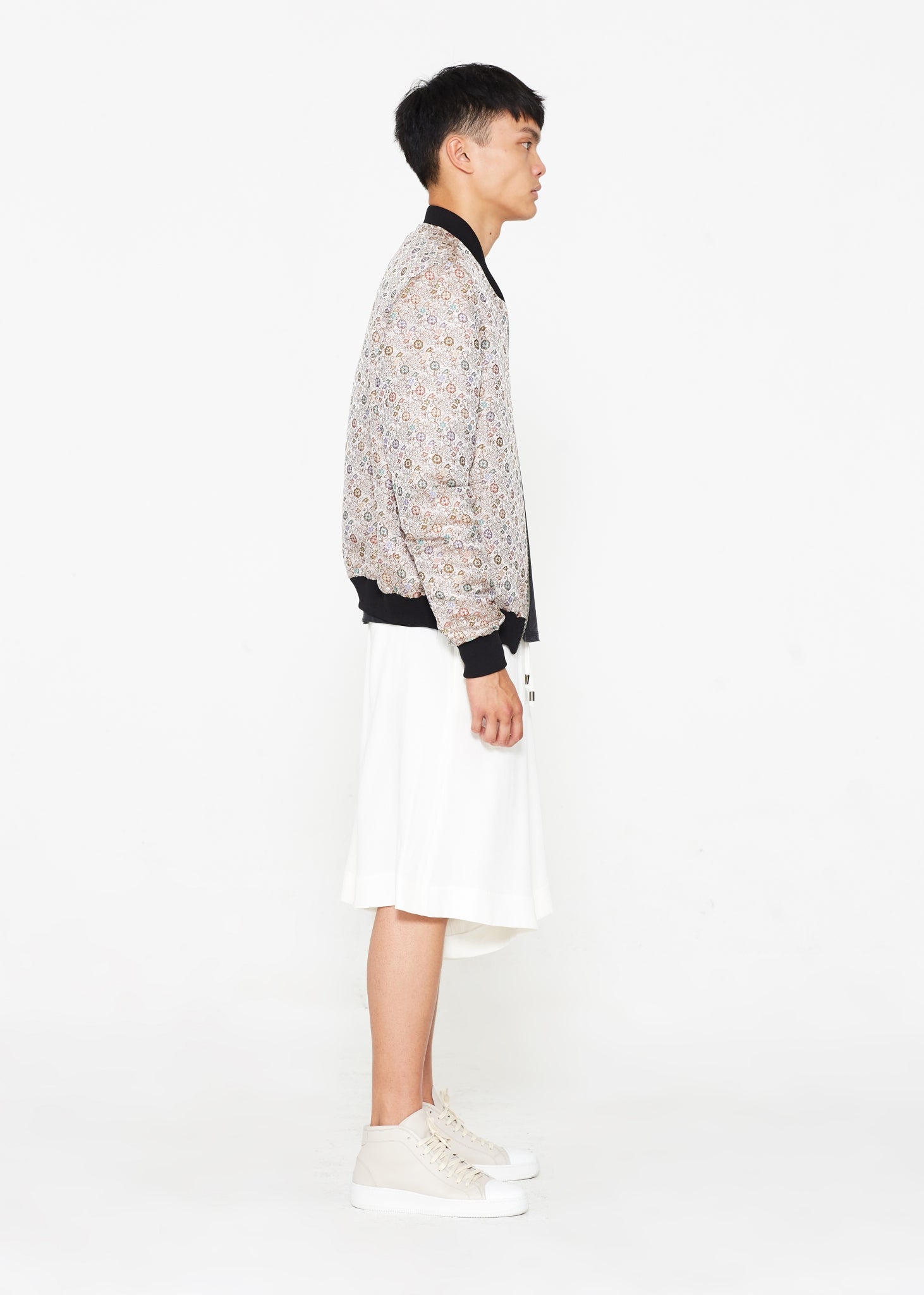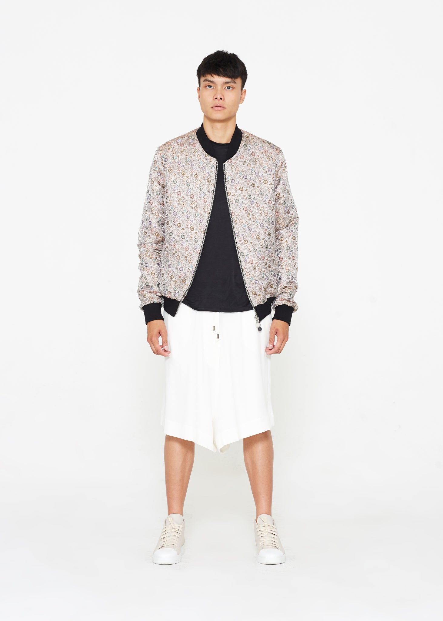 "The Limited Edition Crepe Bomber" in Silver Floral