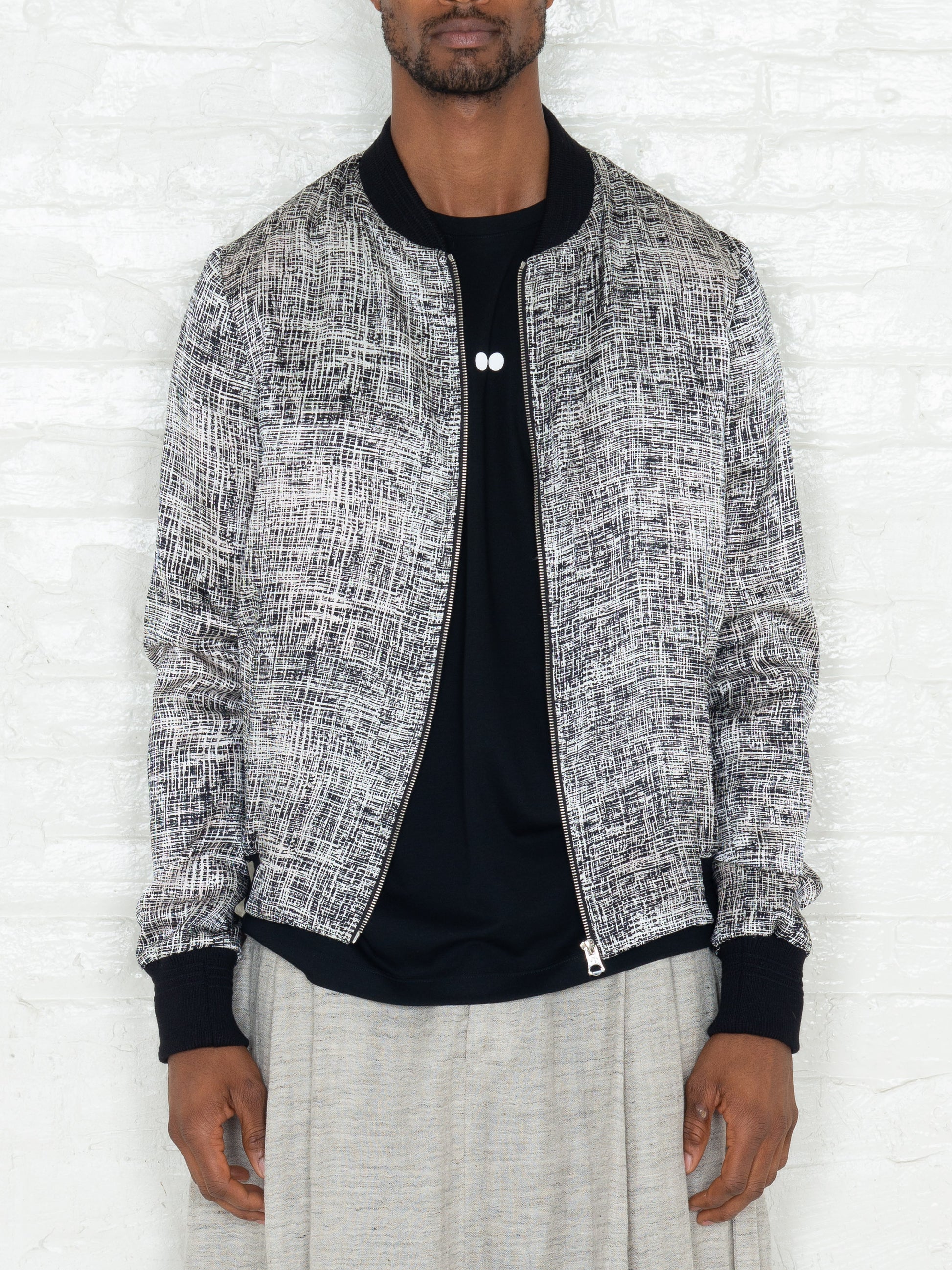 Cut for a relaxed fit, our "Unisex White and Black Silk Bomber" is the perfect classic staple, that can be easily dressed up or down for any deemed occasion.