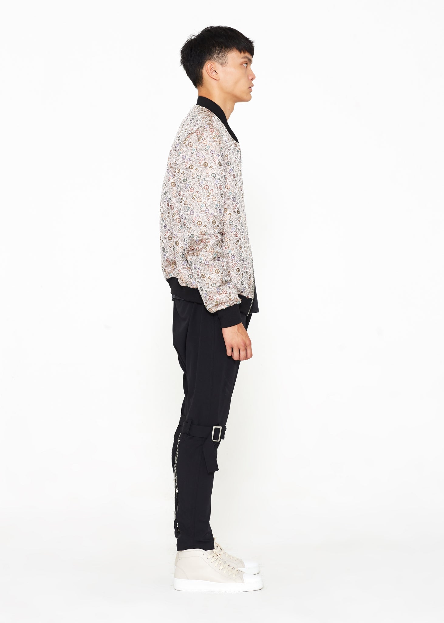 • pocket zipper on the side, two straps with buckles, two zippers in the back of the legs for flexible fit